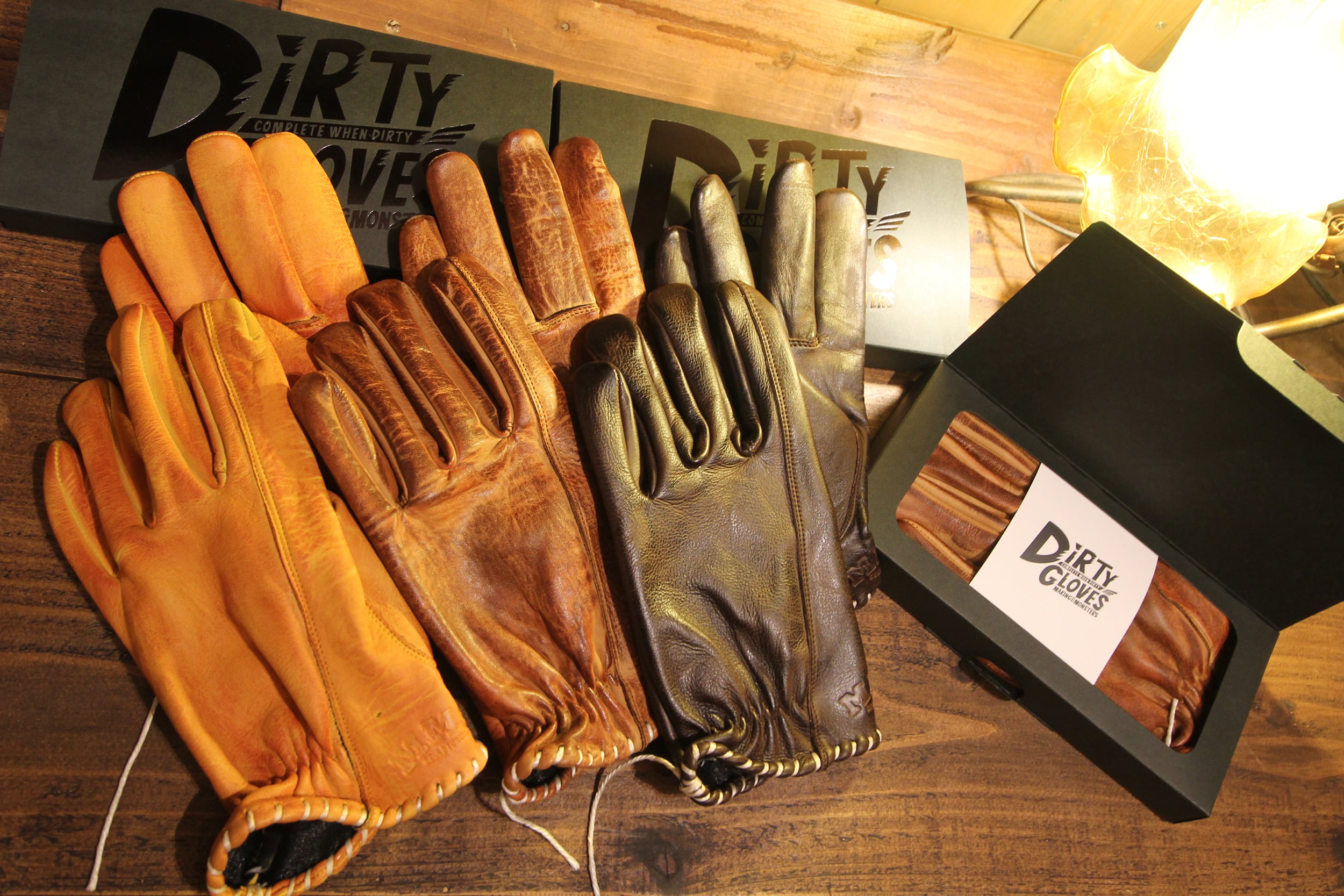 "COMPLETE WHEN DIRTY" 汚れが味に変わる。着けるたび自分に馴染む。 使い続ける事で完成すると言う意味を込めた「DIRTY GLOVES」