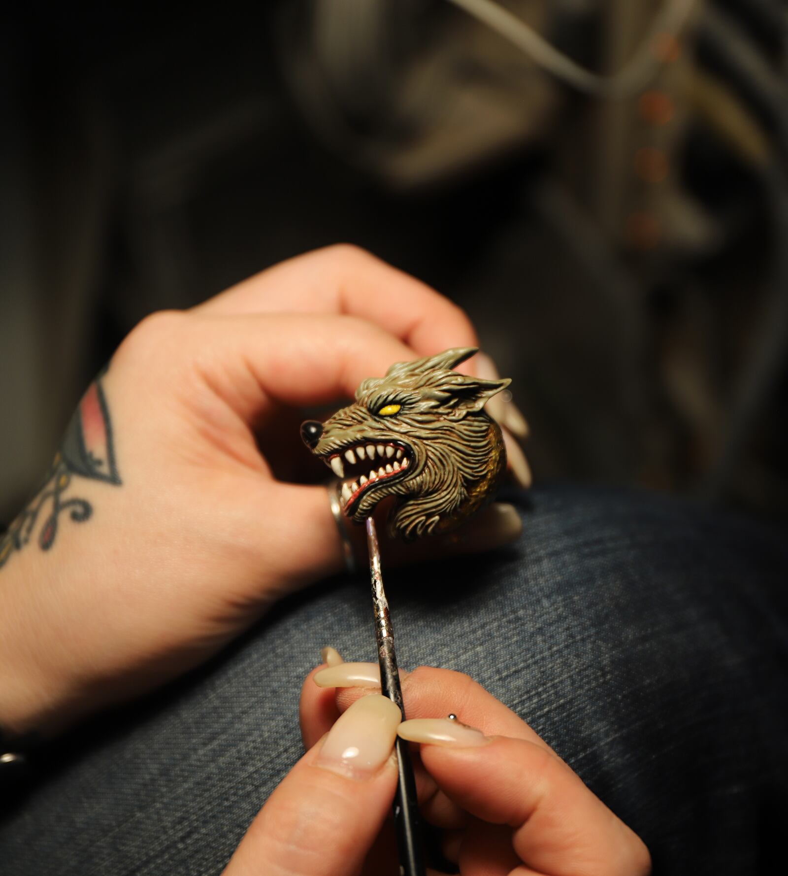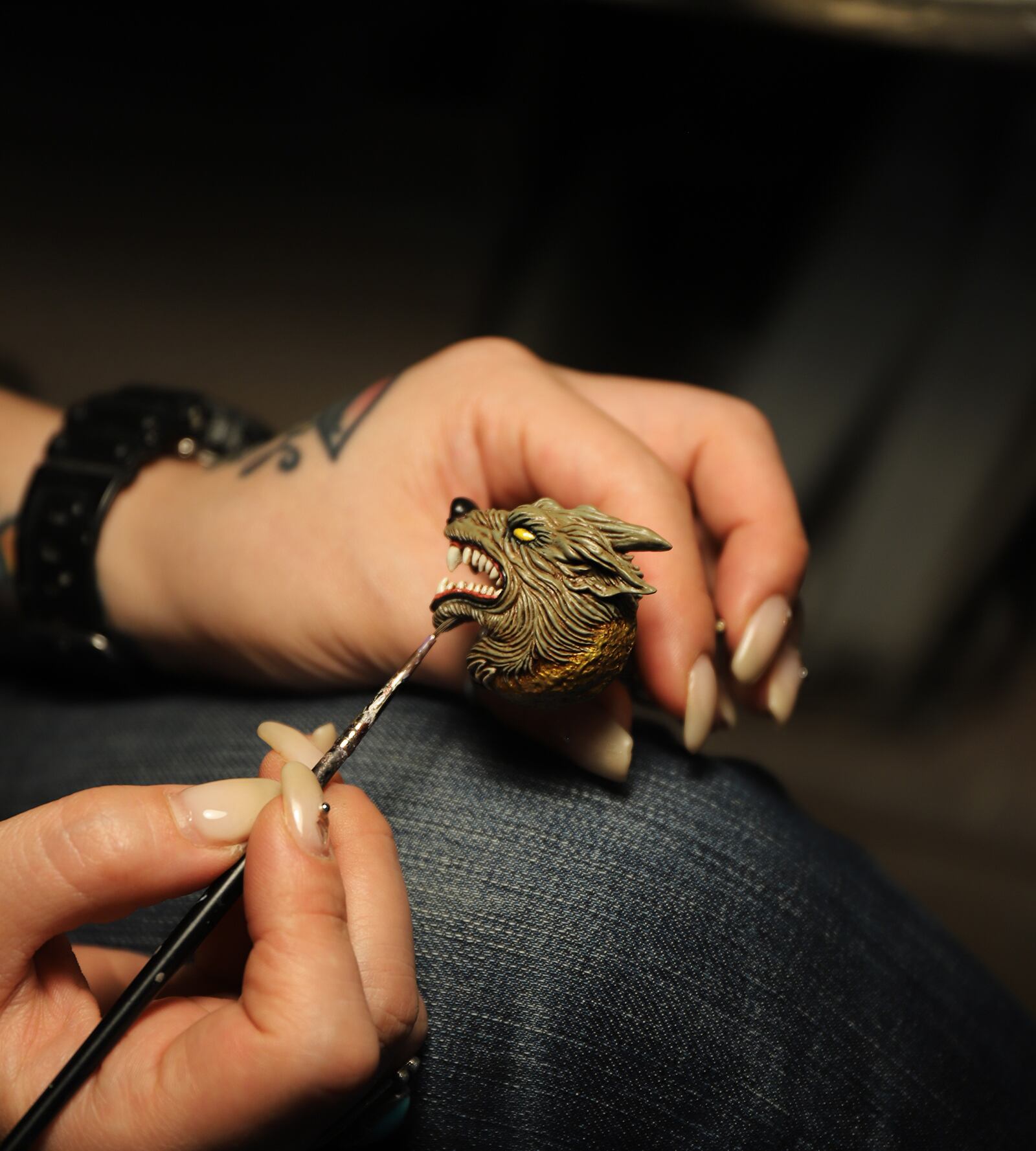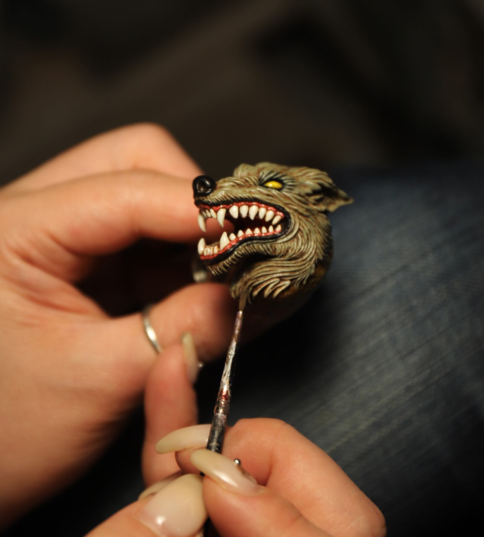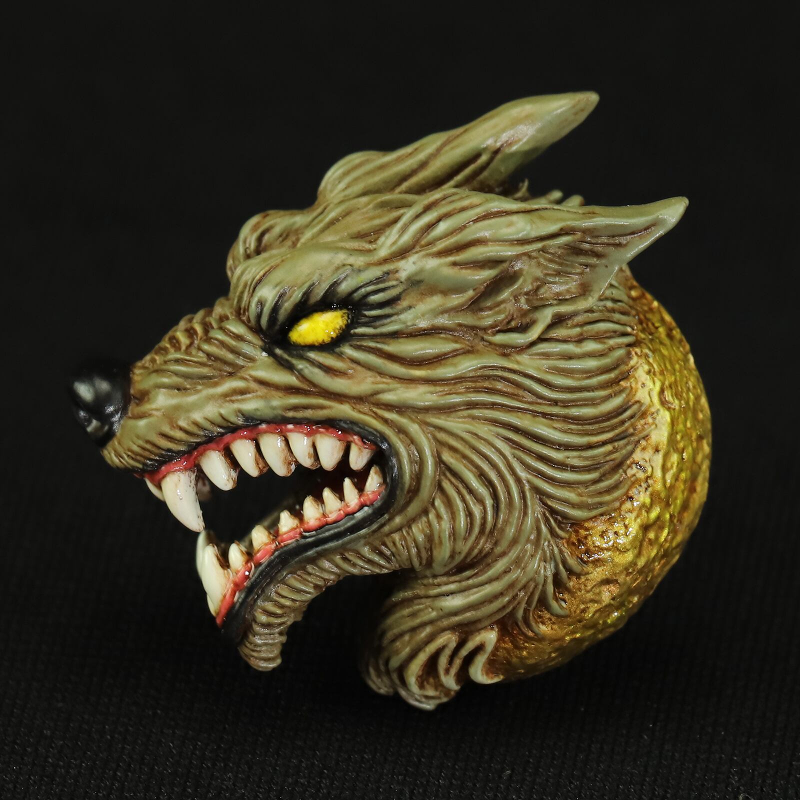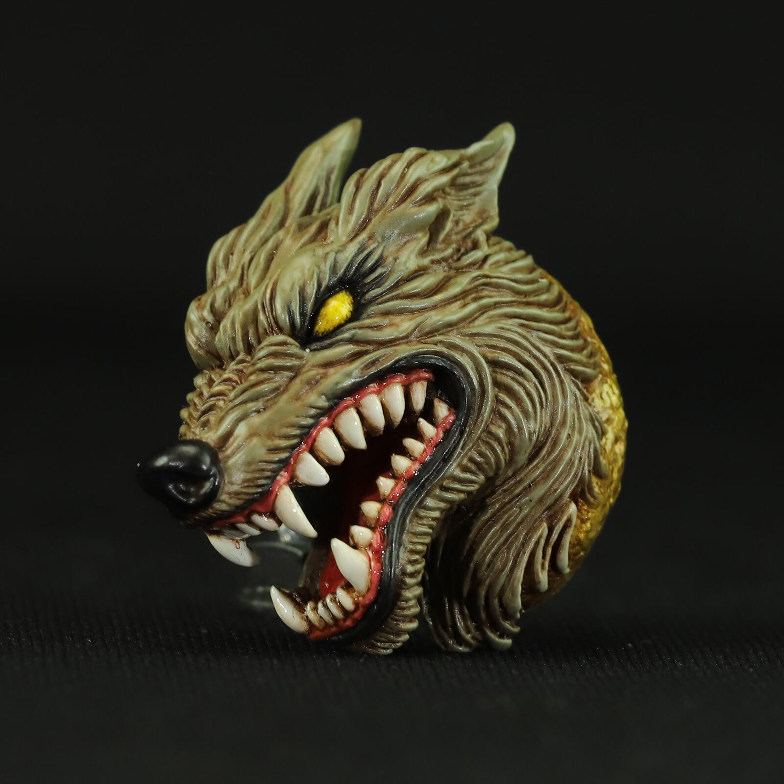 牙や歯茎には光沢を持たせ、魂を吹き込まれたウルフを表現しています。