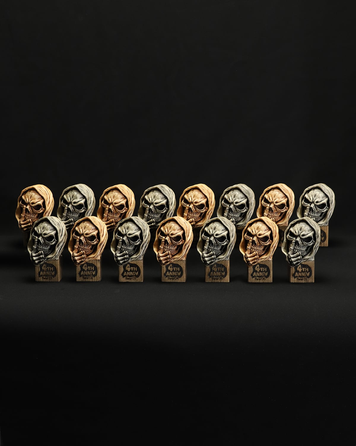 ザラザラとした肌質を彫り込み、リアルなスカルフェイスを表現。