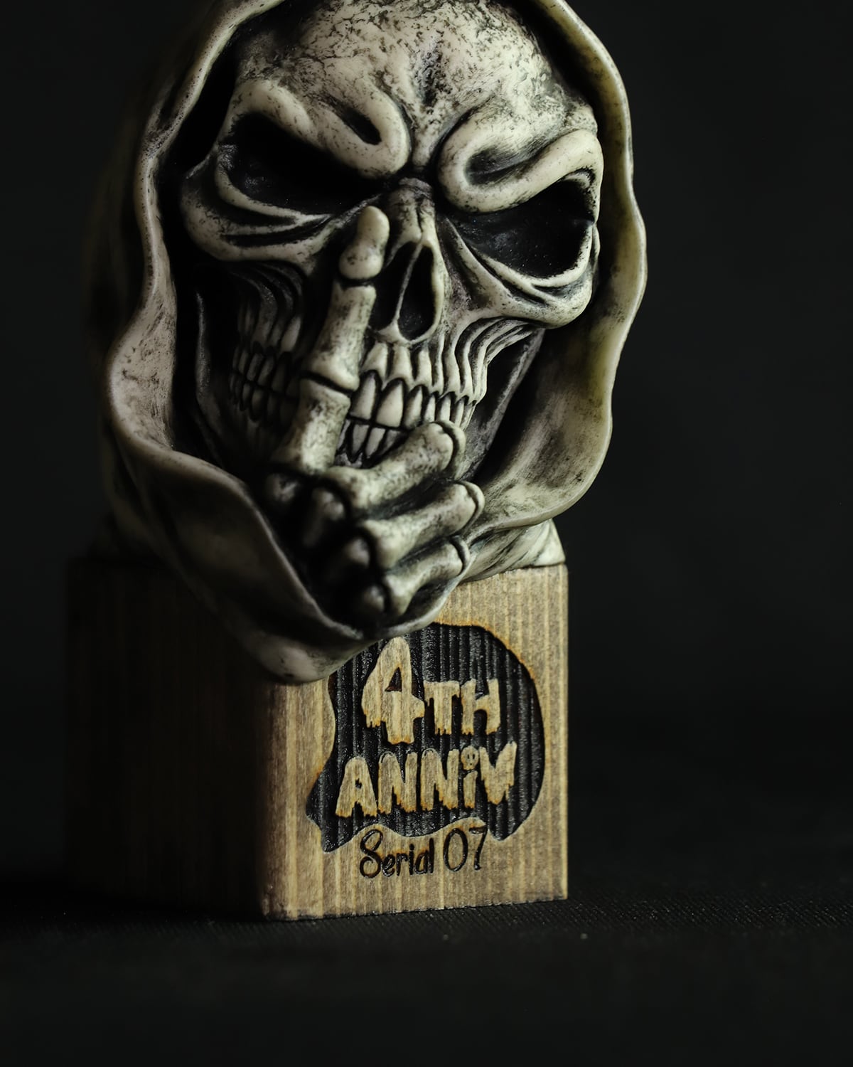 ザラザラとした肌質を彫り込み、リアルなスカルフェイスを表現。