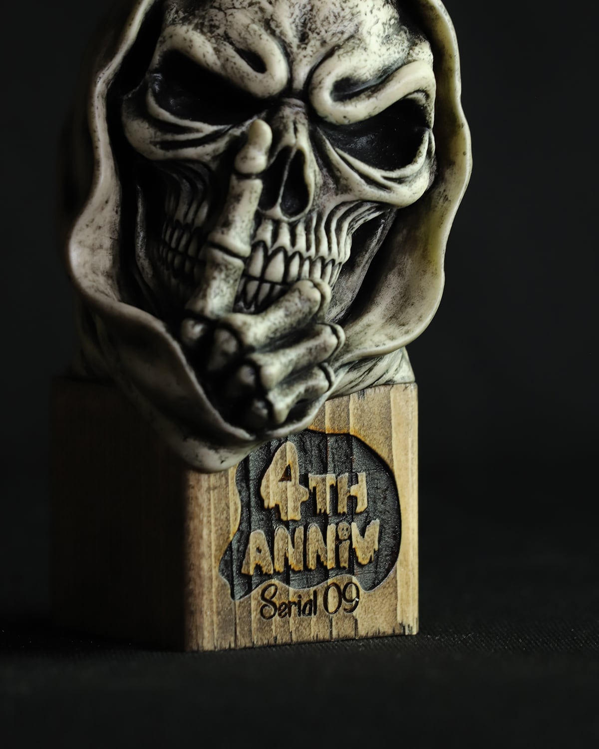 ザラザラとした肌質を彫り込み、リアルなスカルフェイスを表現。