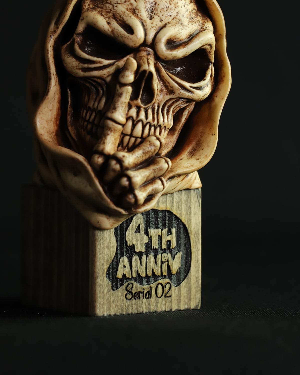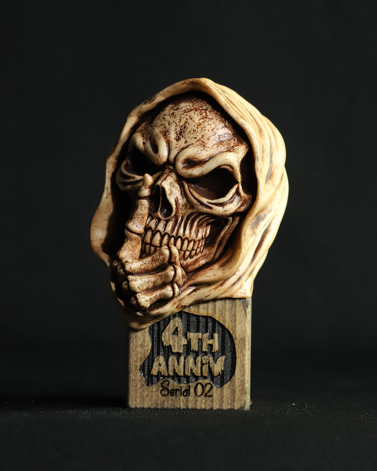 ザラザラとした肌質を彫り込み、リアルなスカルフェイスを表現。