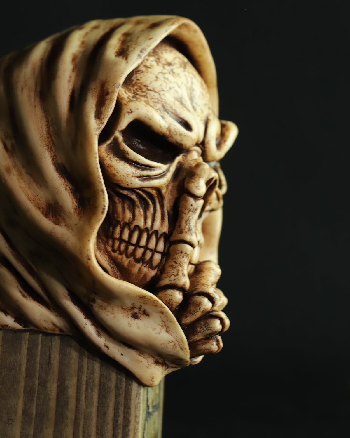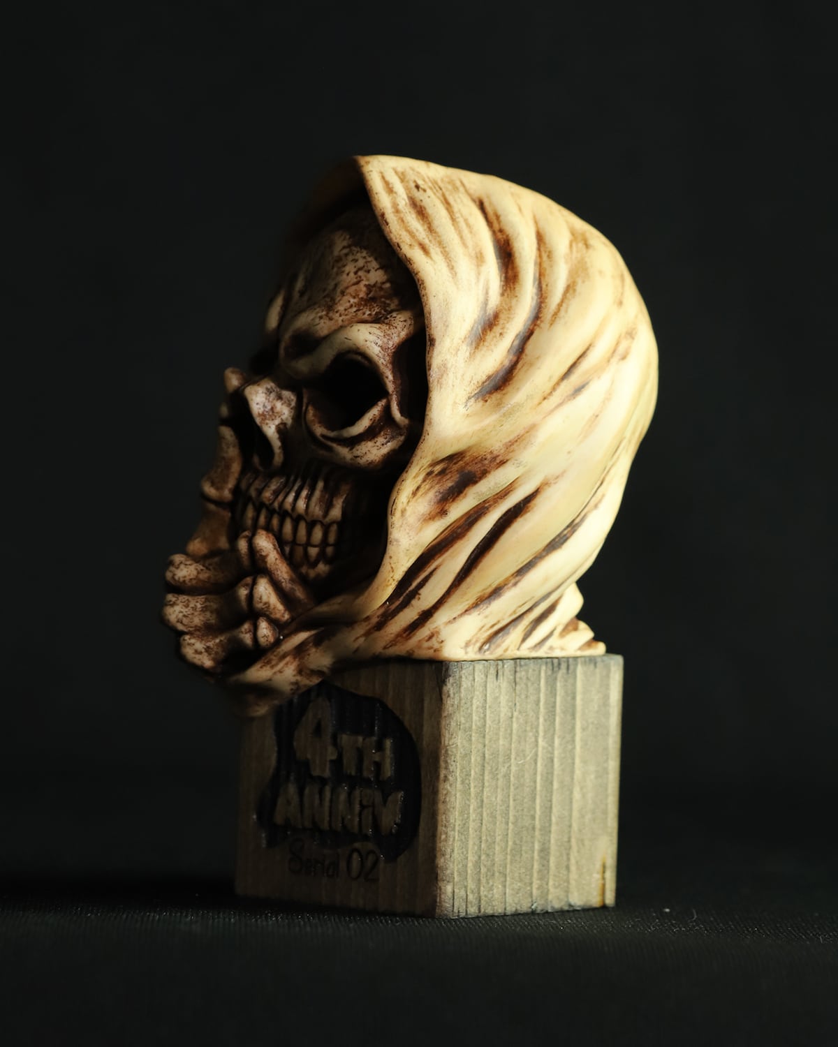 ザラザラとした肌質を彫り込み、リアルなスカルフェイスを表現。