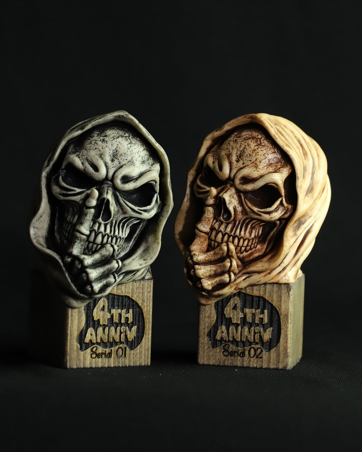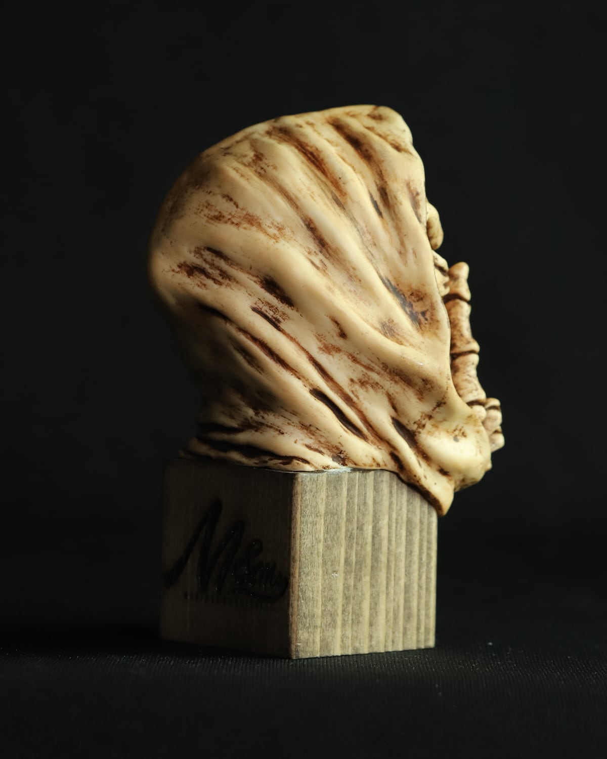 ザラザラとした肌質を彫り込み、リアルなスカルフェイスを表現。