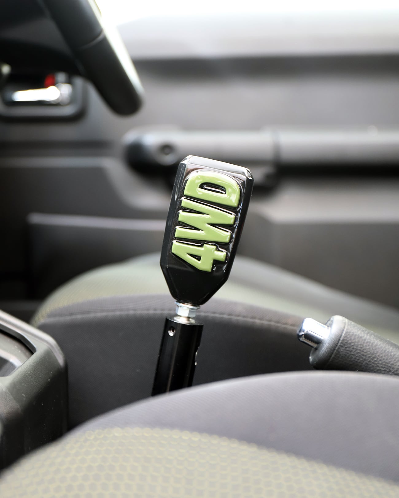 "4WD"の文字を大胆にドロップしたオリジナルシフトノブ