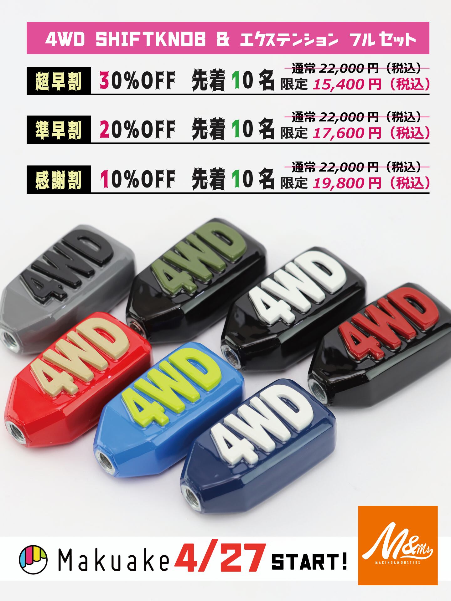 POINT⑤ M&Msオリジナル「FOR THE "4WD" SHIFT KNOB 」同時リリース