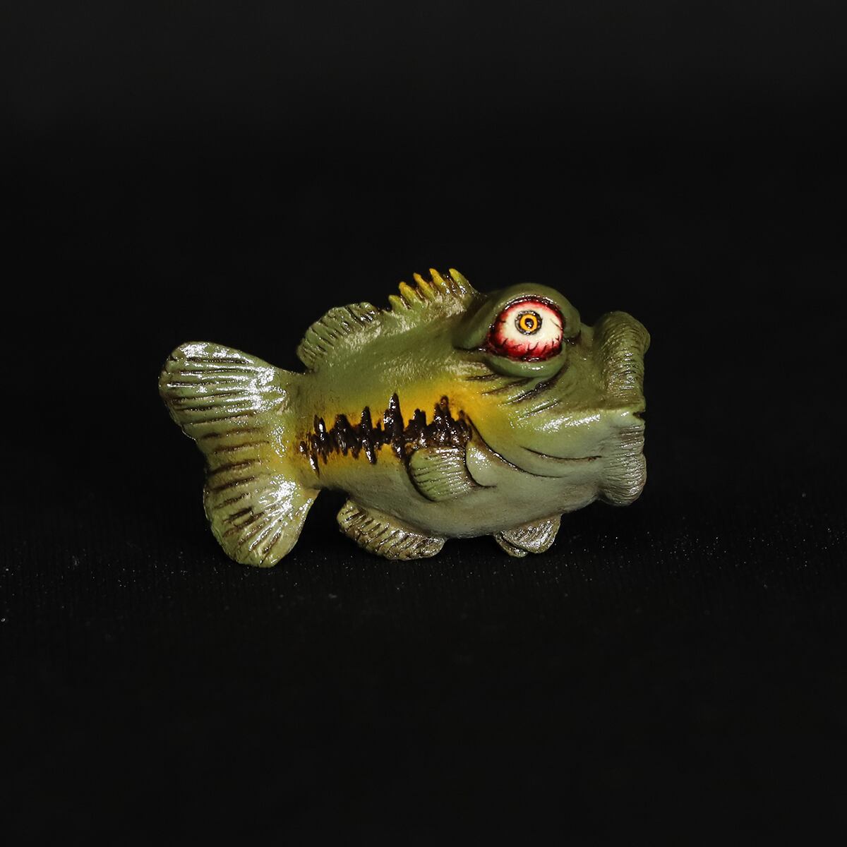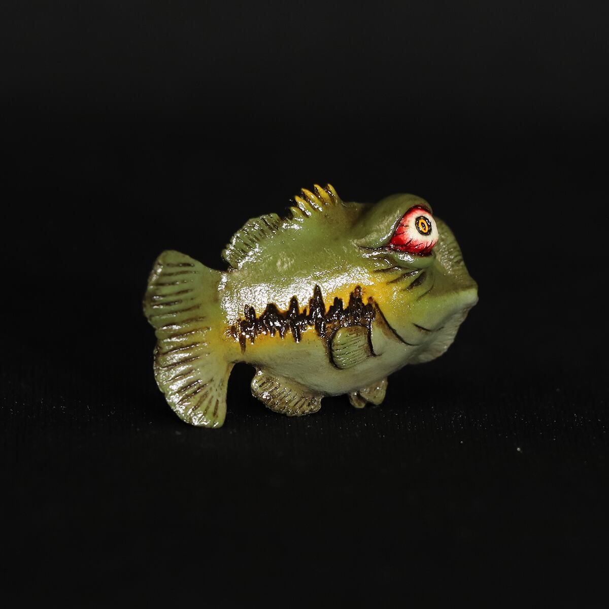 左右異なる表情を見せる迫力のある眼球、躍動感のあるくびれやヒレ。