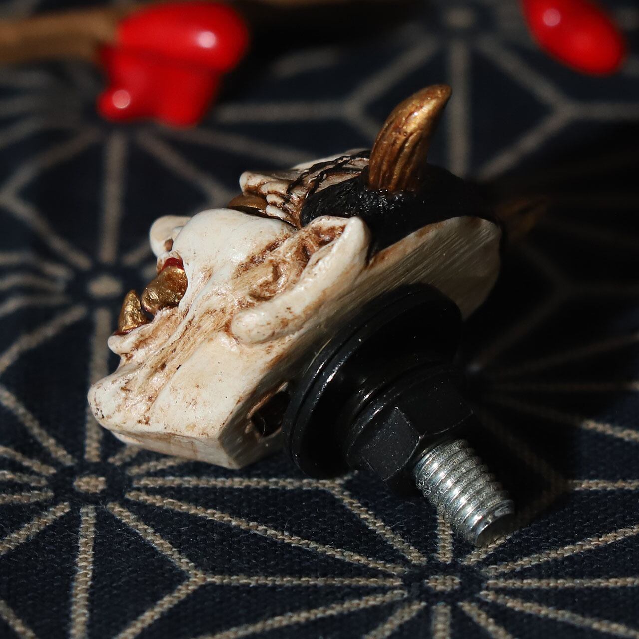 M&Msではその風習になぞらえ、鉄馬で旅する皆様に忍び寄る魔(事故)を遠ざける「お守り」としてナンバーボルトを造形致しました