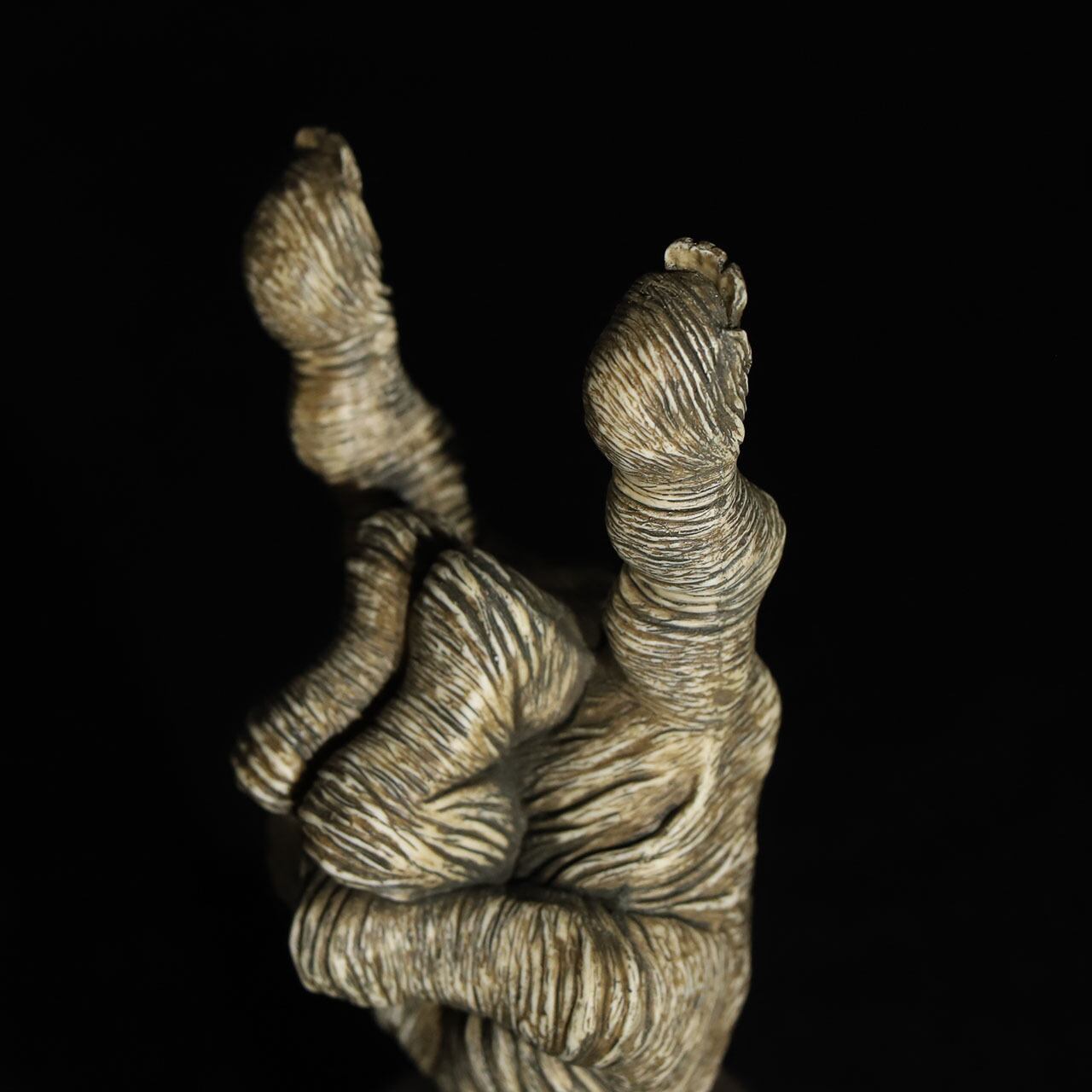 力強く浮き出るシワ、掻き割れた爪、張り出した指の腹に骨格。